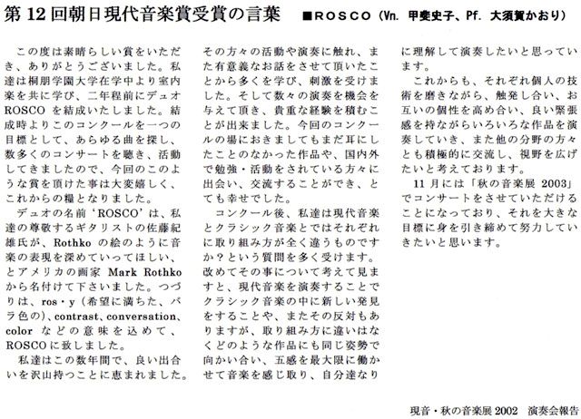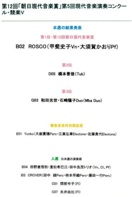 第5回現代音楽演奏コンクール「競楽V」優勝 第12回朝日現代音楽賞受賞