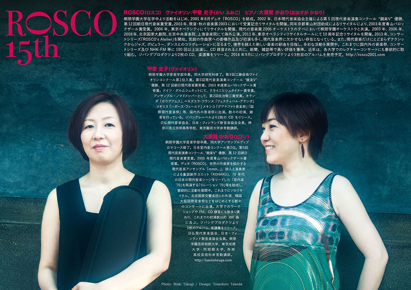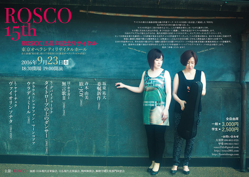 気が付けば15年の歳月が経ちました。ロスコの作品の二色の色彩のように、二人の個性を照らしあいながら過ぎた15年、その間に生まれた沢山の作品、多くの出会いに感謝し、15周年記念リサイタルを開催致します。