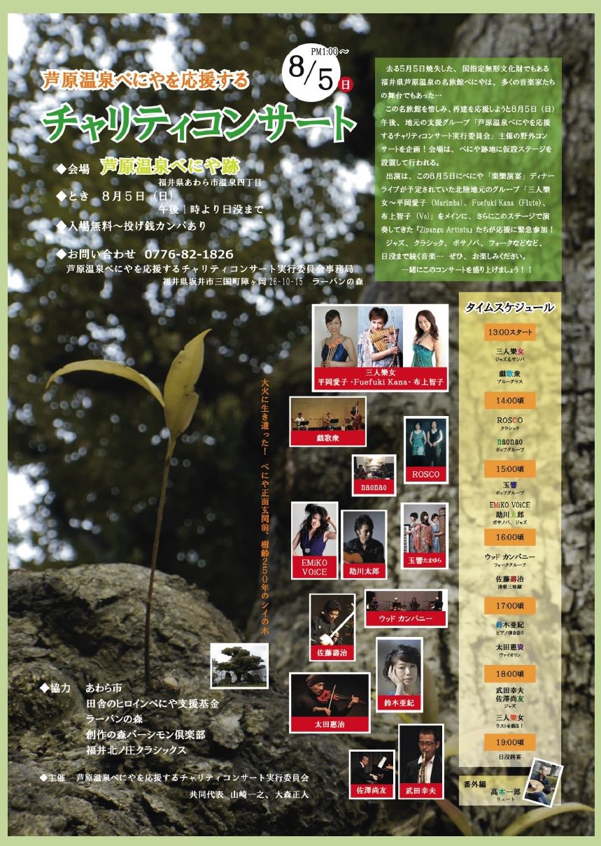 チャリティコンサート ”芦原温泉べにやの再建を応援”