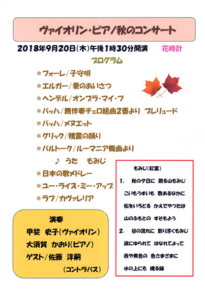 ヴァイオリンとピアノの秋のコンサート