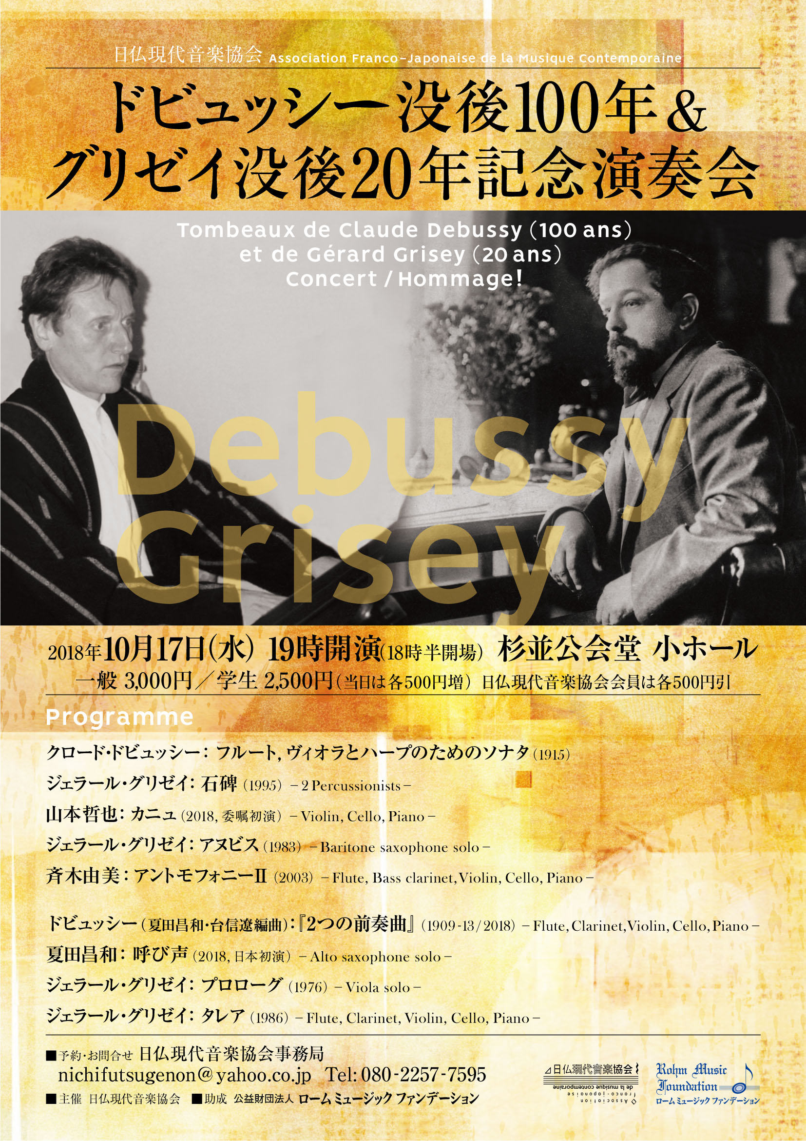 主 催:日仏現代音楽協会 助成:公益財団法人 ロームミュージックファンデーション