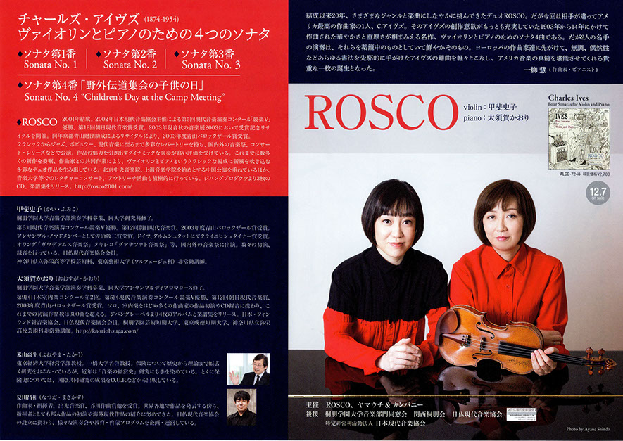 アイヴズ:作曲 (演奏)ROSCO(甲斐史子/バイオリン、大須賀かおり/ピアノ)
